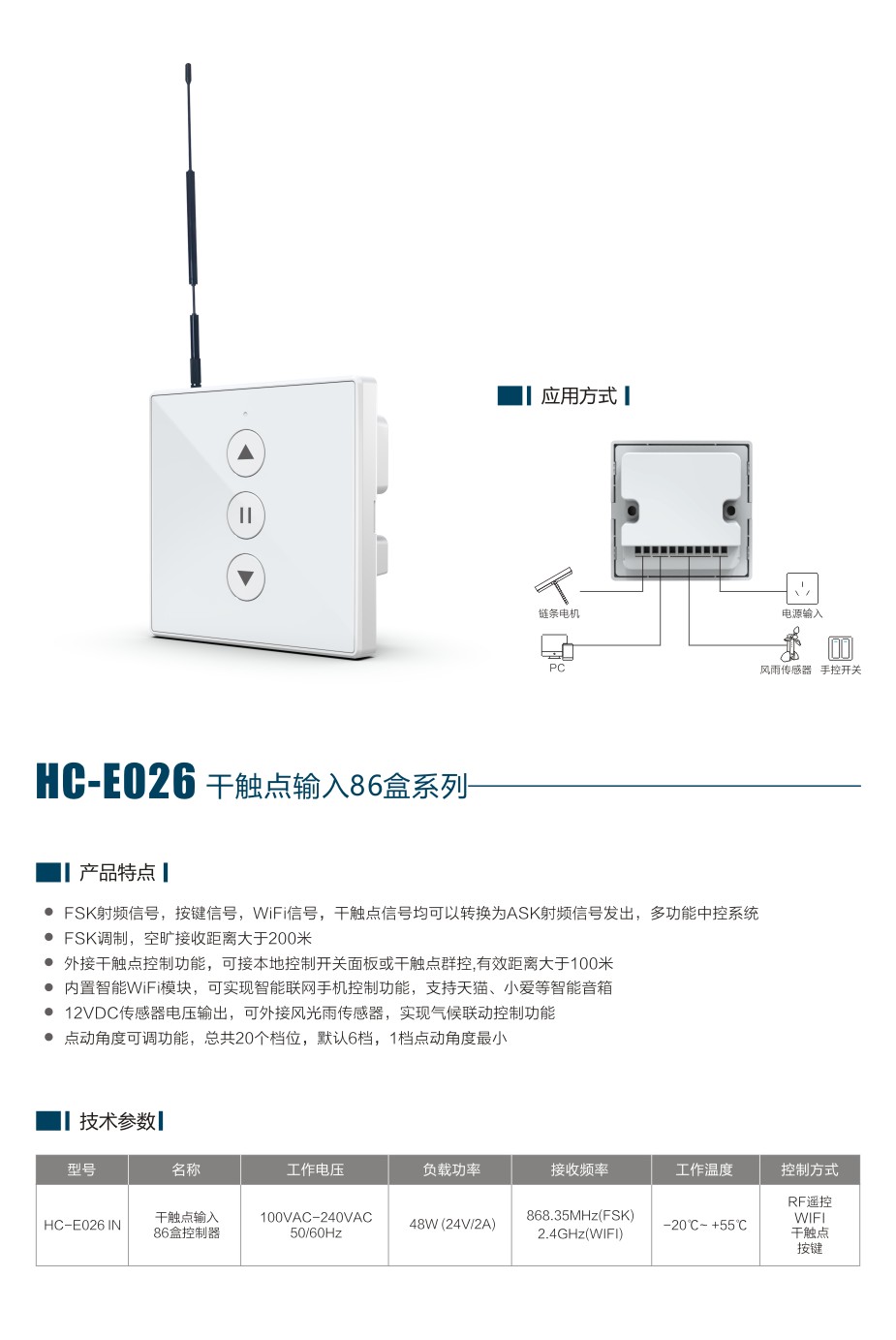 HC-E026干触点输入86盒系列